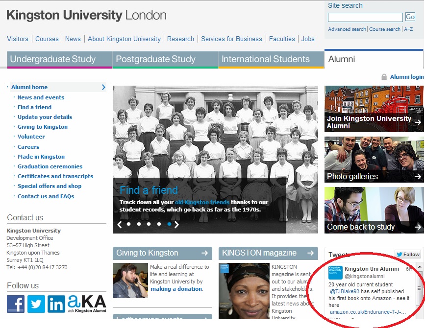 Thank you to Kingston University for mentioning me and Endurance.
