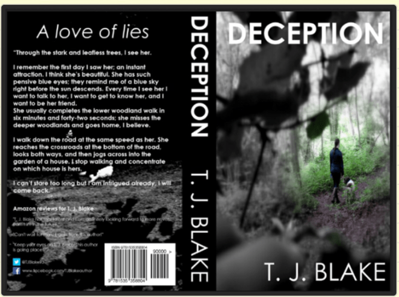 So, the question now is, what is Deception about? If you’ve been keeping up with my blog posts, you’ll know it’s based around an avid dog walker who takes a shining to a female dog walker. I don’t want to give anything at all away though, so I will leave you with the synopsis for Deception.