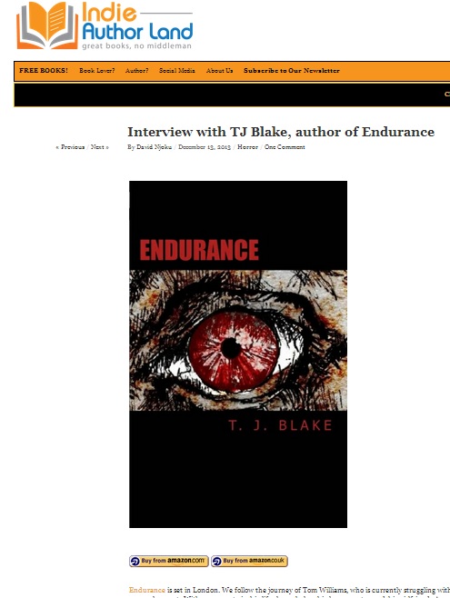 To keep updated about The Author or to see what I’m up to or to read about my other book Endurance, you can follow me on Twitter @TJBlake93. You can go on Facebook and visit http://www.facebook.com/TheAuthor2013 or http://www.facebook.com/Endurance2013 .